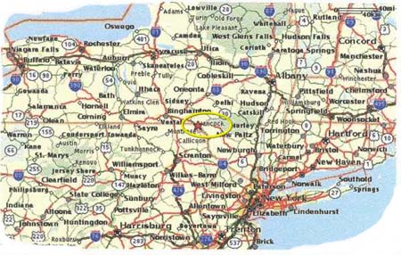 Take Rt. 80E to 81N to Scranton. Follow directions from Scranton above.