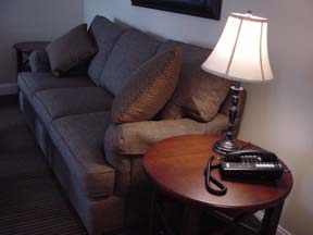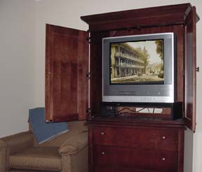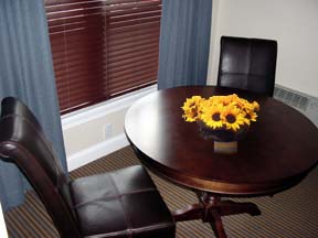 If you require a little more leg room, the Suites at the Hancock House provide the ideal solution. You'll have your own living room, complete with large overstuffed sofa, crystal clear LCD TV, personal refrigerator and dining area. Naturally you'll enjoy the very large comfortable King bed in your bedroom. You'll also find another TV in the bed room complete with VHS/DVD playback capabilities and remote control. As with all our rooms, you'll find 4 very substantial overstuffed pillows on your bed upon your check in. In the bedroom closet, you'll find another full length heavy blanket with two more pillows. Feel free to call the front desk with any request, anytime of the day or evening. You will find the following items standard in every Suite: