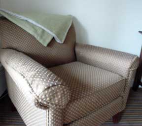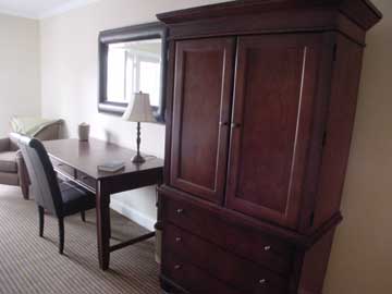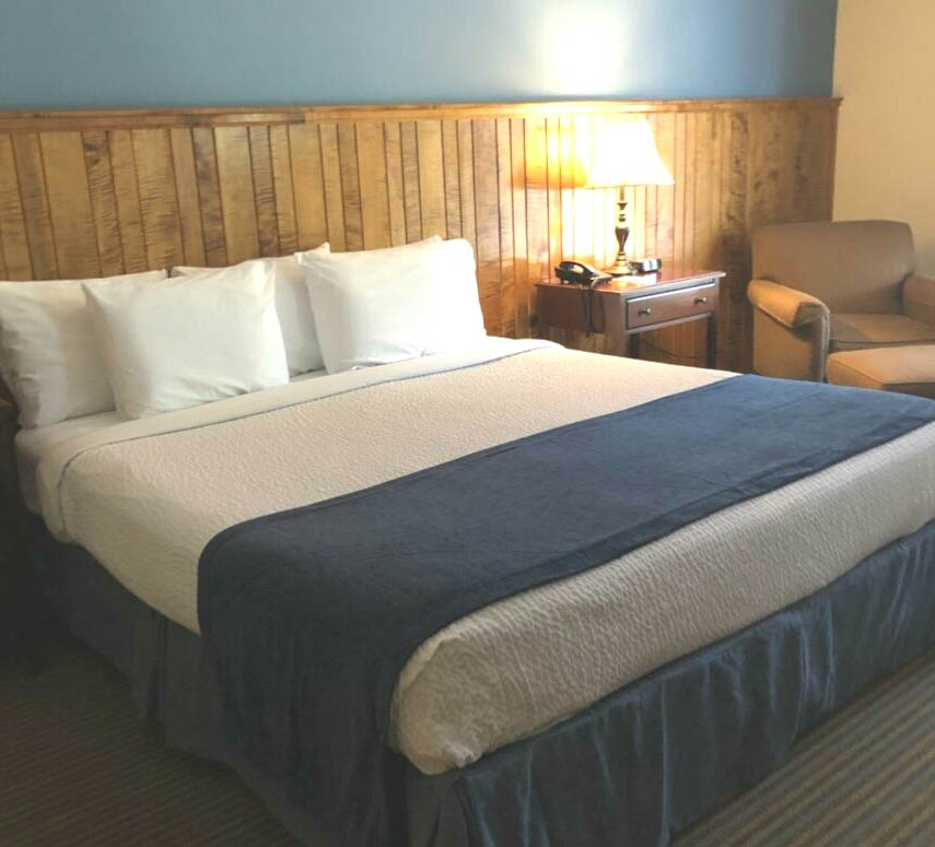 Each King room at the Hancock House features a very large comfortable King bed, which is, well, fit for a King. As with all our rooms, you'll find 4 very substantial pillows on your bed upon your check in. In the closet, right next to the iron and ironing board, you'll find a full length heavy blanket. You'll enjoy the large arm chair right near the writing desk. If we have overlooked any of your needs, don't hesitate to call the front desk with your request anytime of the day or evening. You will also find the following items standard in every King & Queen room: